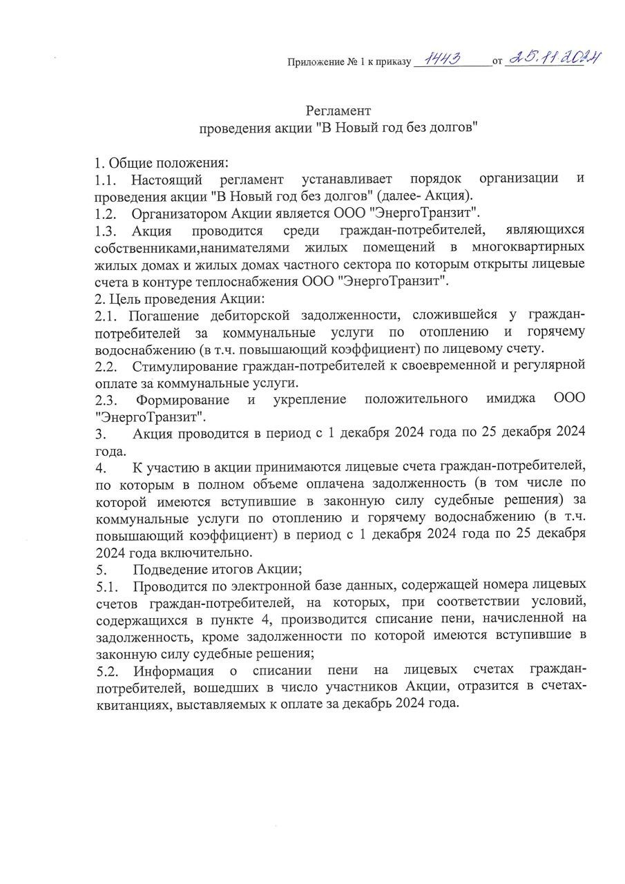 ООО "ЭнергоТранзит" и ООО "СибЭнерго" проводит акцию "В Новый год без долгов"